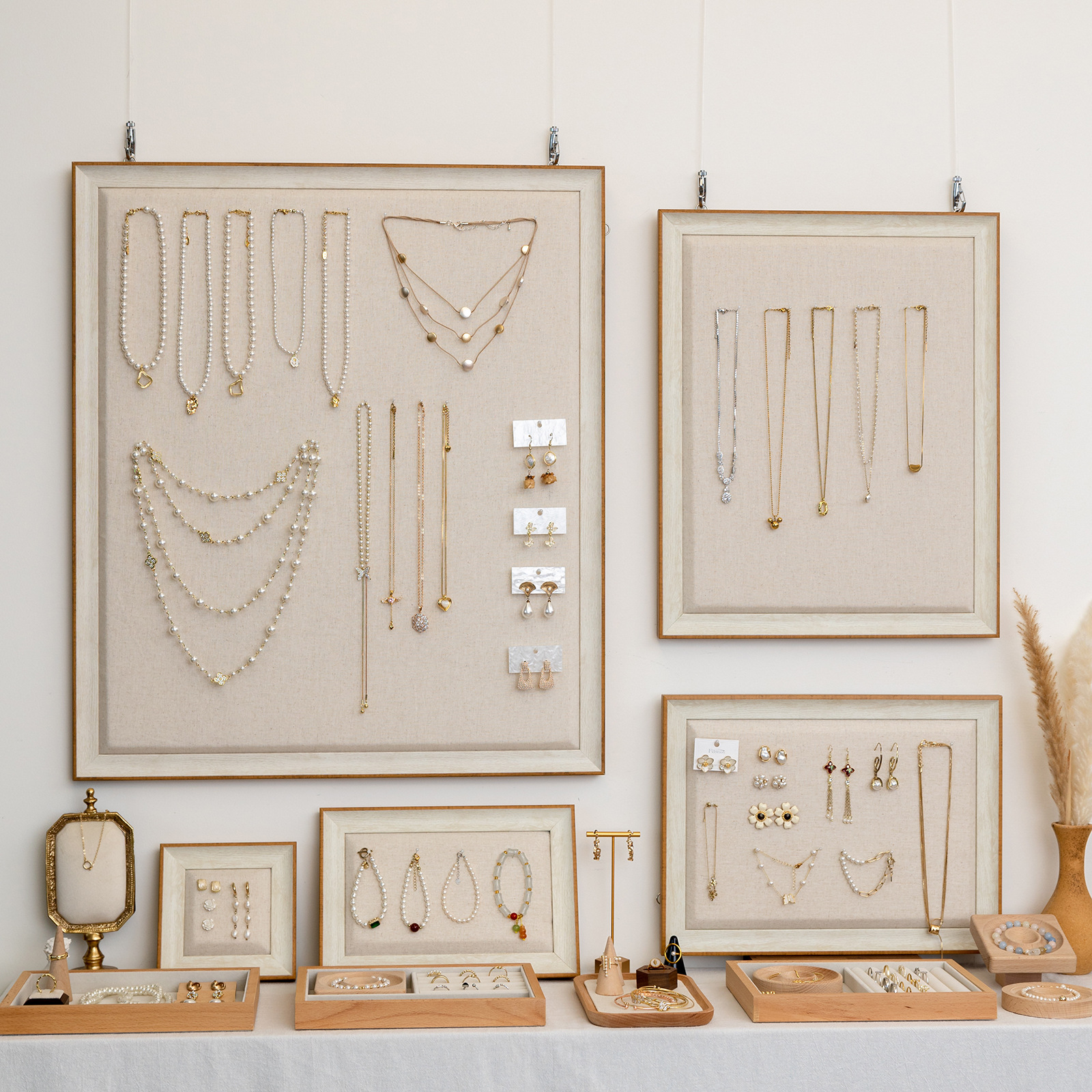 Wall-Mounted Jewelry Display Rack Linen Photo Frame Necklace Earrings Bracelet Storage Rack Large Capacity Display Window Ornaments