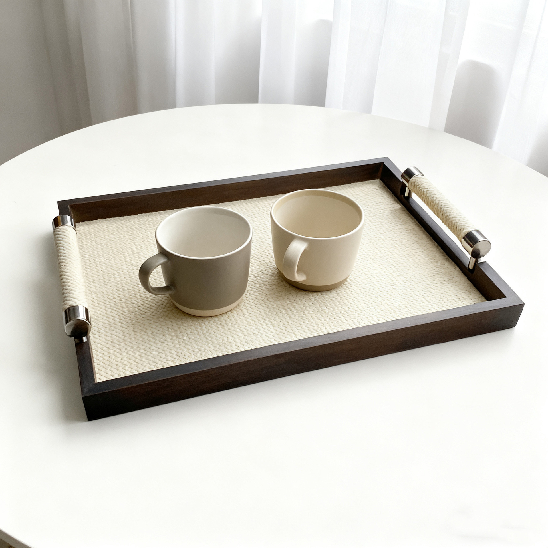 Simple and Luxurious Walnut Veneer Tray Tissue Box Matchinging Model Room Storage Tray Living Room Coffee Table Soft Decoration Ornaments