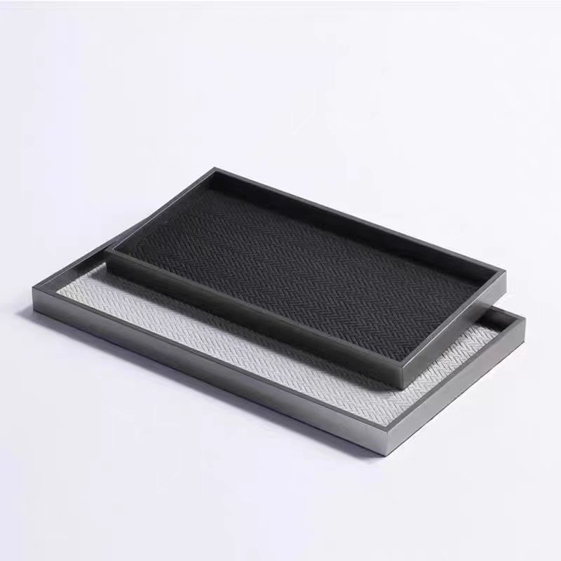 Modern Simple Leather Metal Rectangular Tray Storage Creative Decoration Coffee Table Desktop Hotel Model Room
