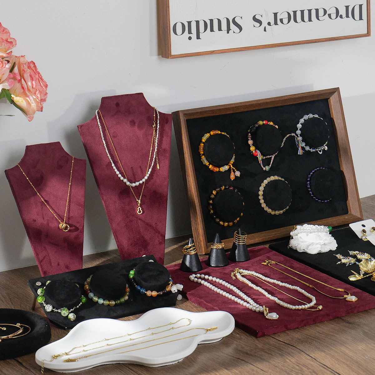 Jewelry Display Stand Retro Style Velvet Bracelet Necklace Stand Ring Bracelet Jewelry Display Tray Counter Props Shooting