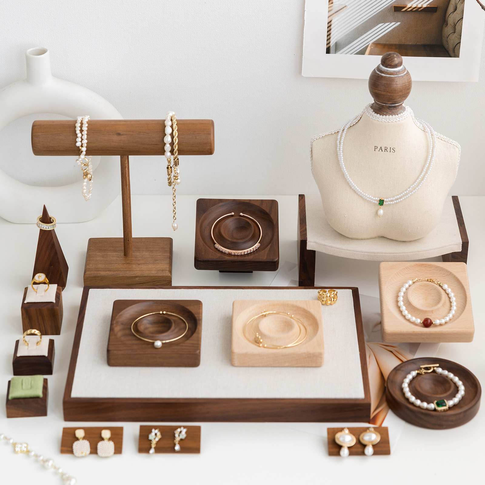 Walnut jewelry display props jewelry tray earrings necklace bracelet ladder display stand jewelry solid wood base