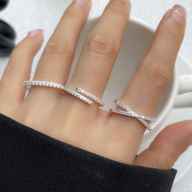 South Korea Zircon Diamond Ring Women's 925 Sterling Silver Spring and Summer Niche Light Luxury High-end Finger Ring Open Finger Ring Wholesale