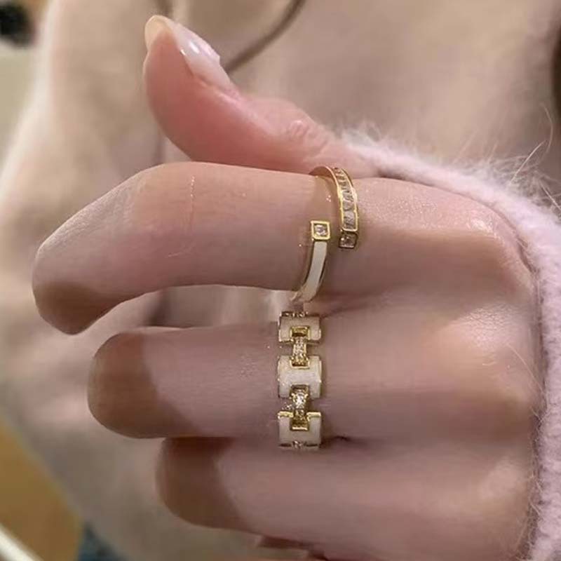 Korean Style Simple Titanium Steel Ring Women's Design Sense Niche Half Ring Diamond Elegant Couple's Pair Ring Girlfriend Internet Celebrity Jewelry