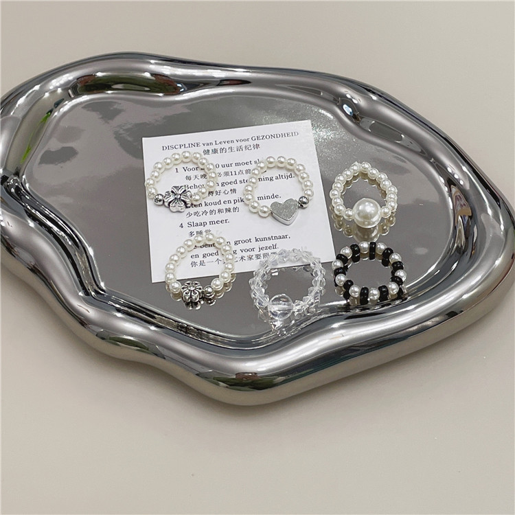 South Korea vintage geometric peach heart Clover beaded ring South Korea all-match pearl ring girl crystal ring