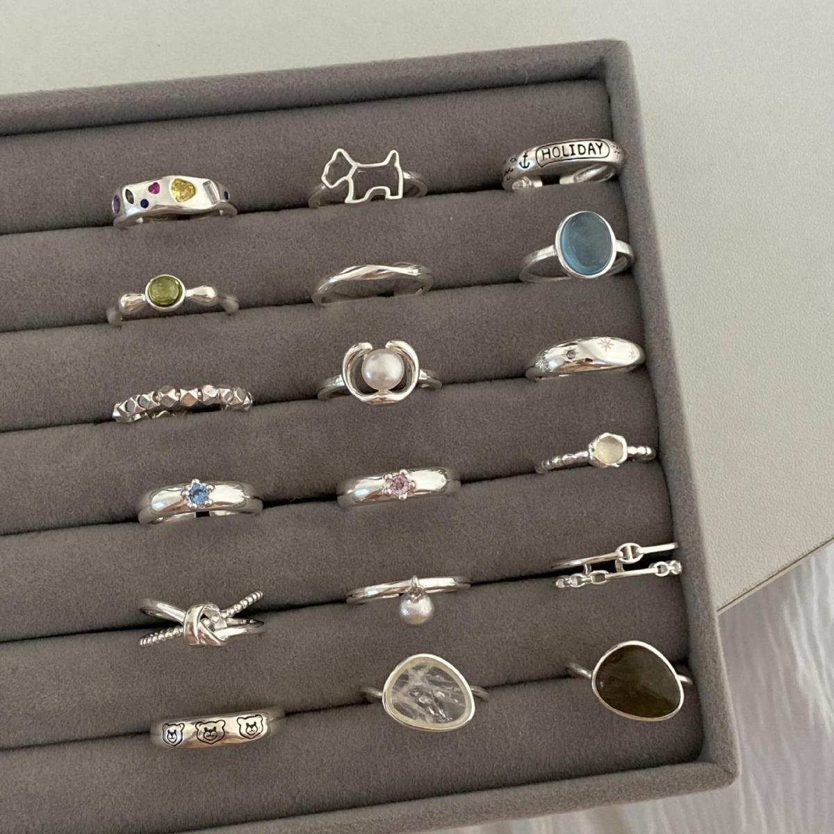 2024 new South Korea minimalist silver pearl open ring ins niche light luxury women's food finger ring copper wholesale
