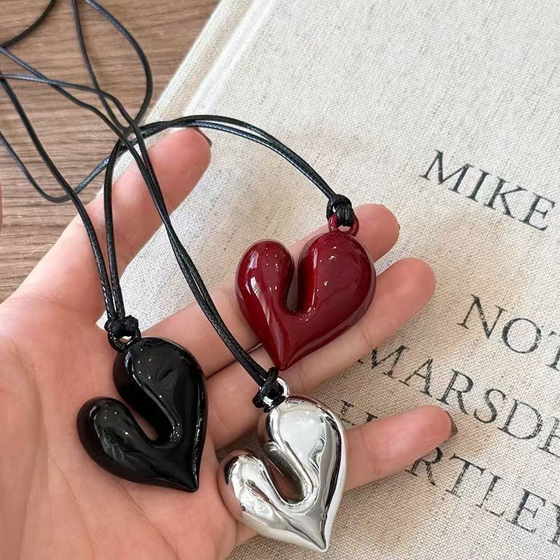 Blogger Reina's Same Style Heart Necklace for Women, High-End Black Rope Halter Pendant, Korean Internet Celebrity Design Accessories
