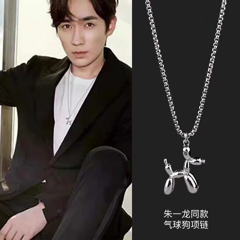 South Korea ins style fashionable niche cute silver balloon puppy temperament blogger necklace trendy cool design pendant