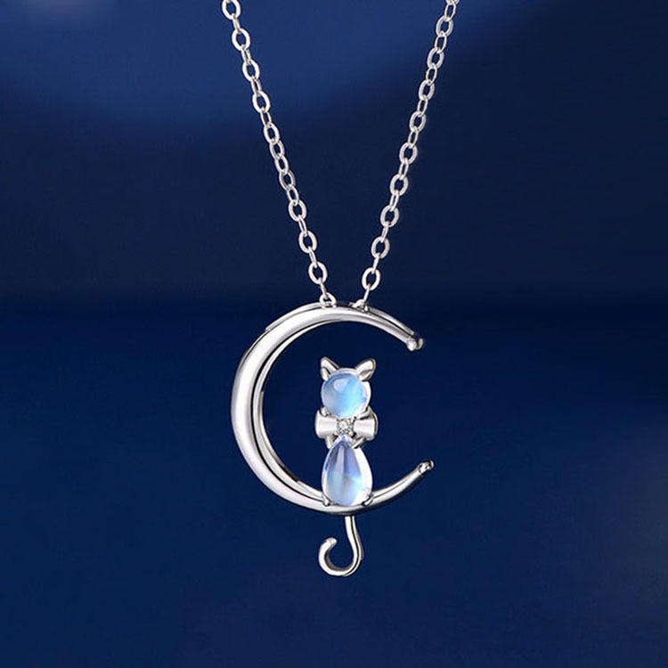 2021 New Moon Cat Collarbone Necklace Moonstone Women's Light Luxury Niche Design Sense ins Cold Style Neck Chain
