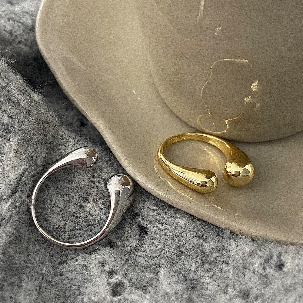 South Korea Dongdaemun ball open ring female niche cold simple temperament all-match metal ring copper plated real gold