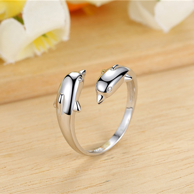 Korean fashion Happy Double Dolphin Love open ring cute little dolphin women flying Ring Ring Jewelry Wholesale