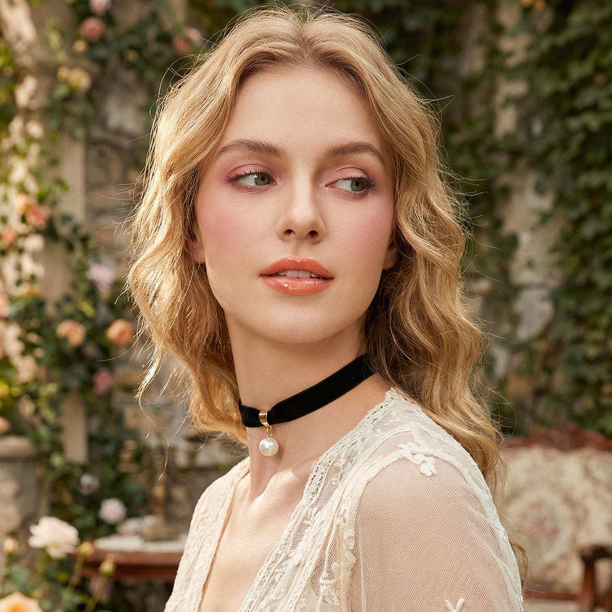 Harajuku Jewelry Imitation Pearl Velvet Necklace Chain Creative choker Accessories Women's Fleece Collar