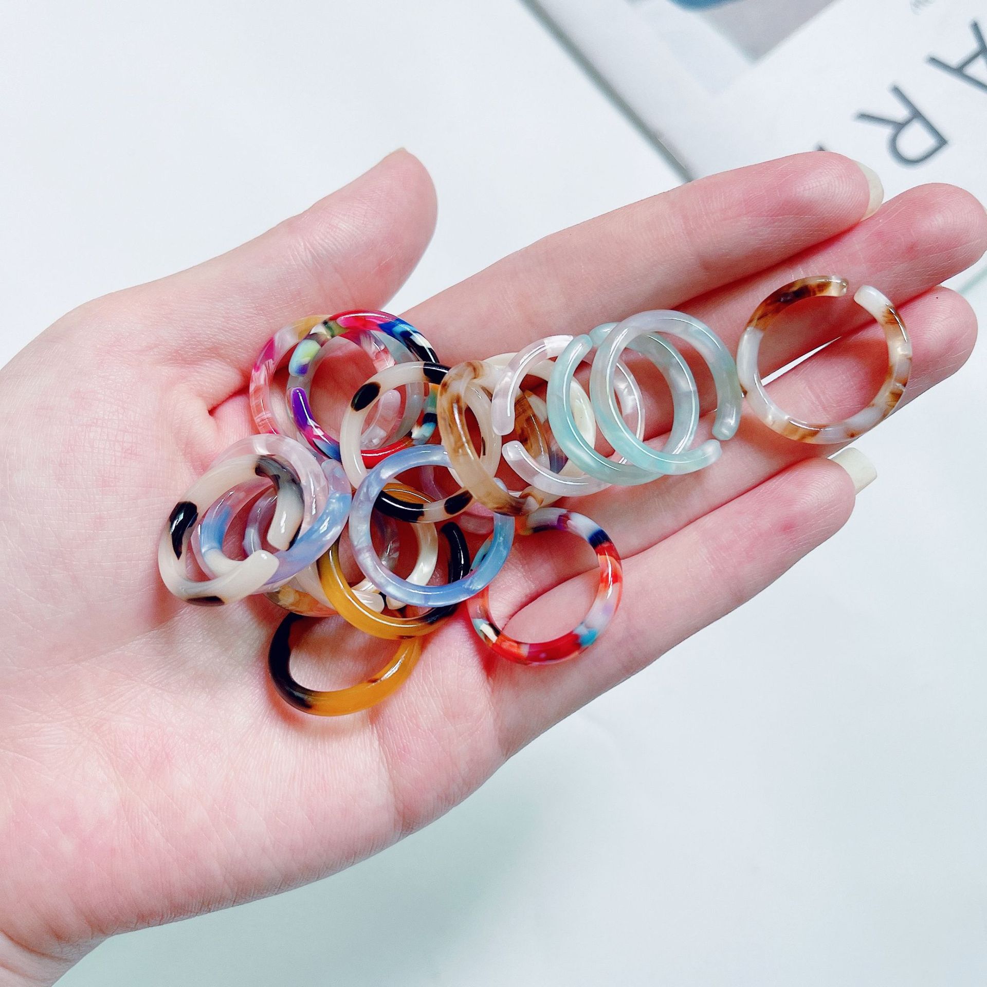 Korean style INS style acetate transparent ring South Korea retro geometric color ring girl candy open ring