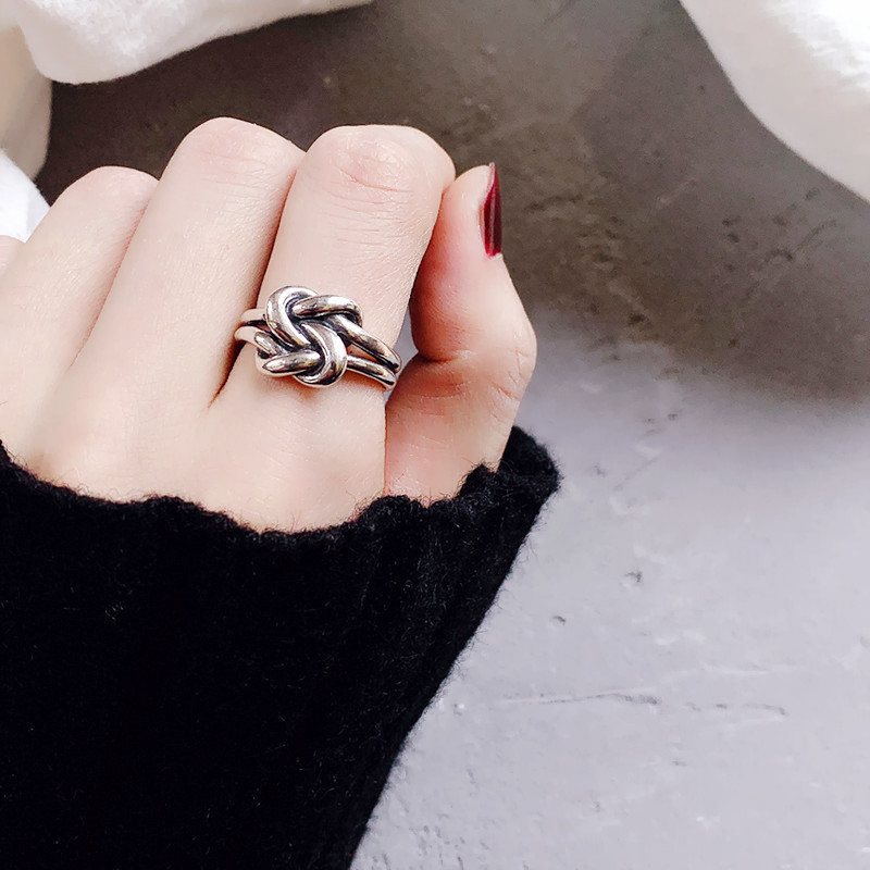 South Korea Dongdaemun s925 Silver Wholesale Fashion Personality Retro Knot Ring Women Braided Ring Ring Bracelet