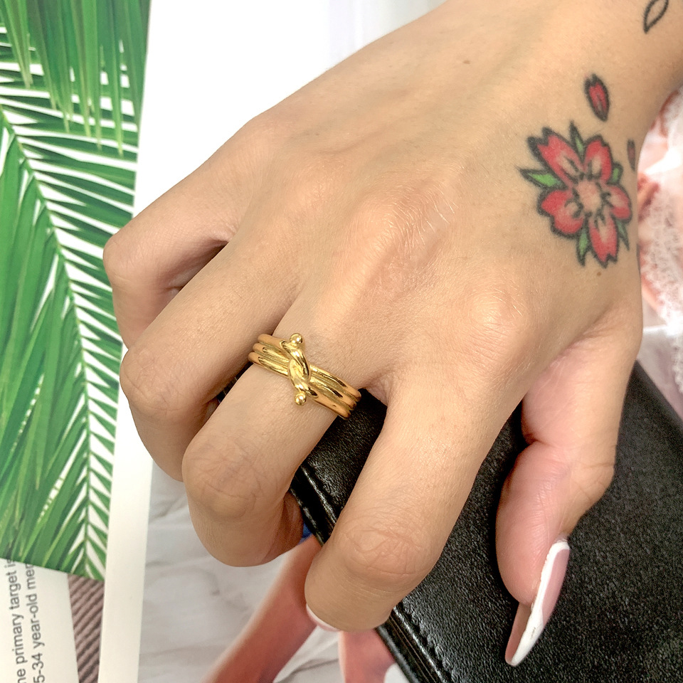 Cold Celi Style Fashion Simple Trendy Elegant Golden Knot Knot Open Texture Ring Titanium Steel Gold Plated Women