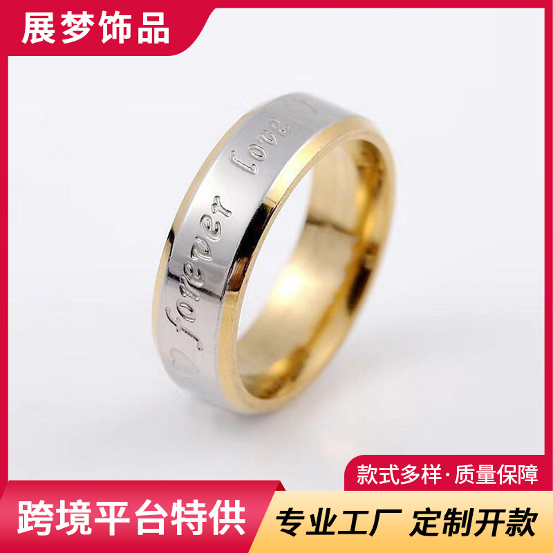 Korean Style Popular Cross-Border Accessories Forever Love European and American Titanium Steel Couple Rings 18K Gold Rings