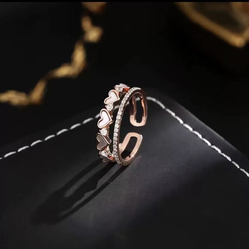 Korean New Women's Love Shell Ring Japanese-style Double-layer Ring Opening Adjustable Full Zircon