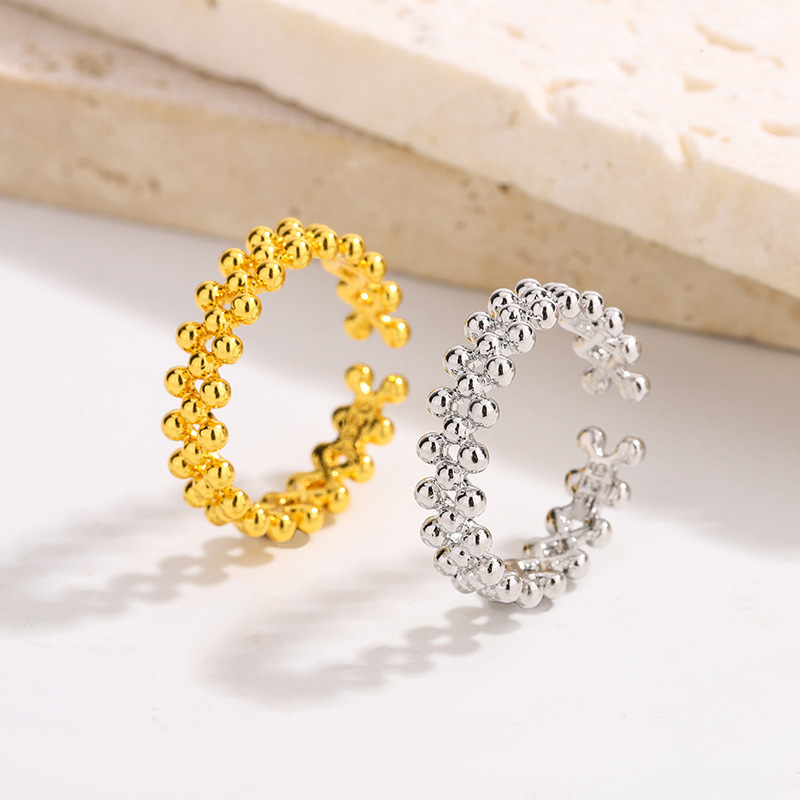 02533 Korean Dongdaemun Double Row Round Bead Ring Small, Exquisite and Versatile Personalized Plain Ring Open Ring for Women