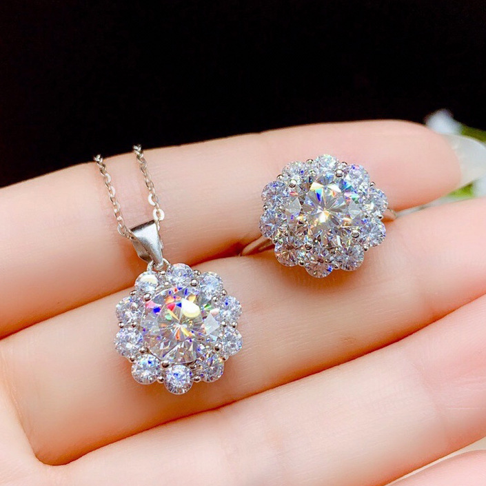 2 karat Eight Heart and Eight Arrows Plating PT950 Full Diamond Simulation Mosan Diamond Opening Ring Women's Internet Celebrant Pendant Necklace