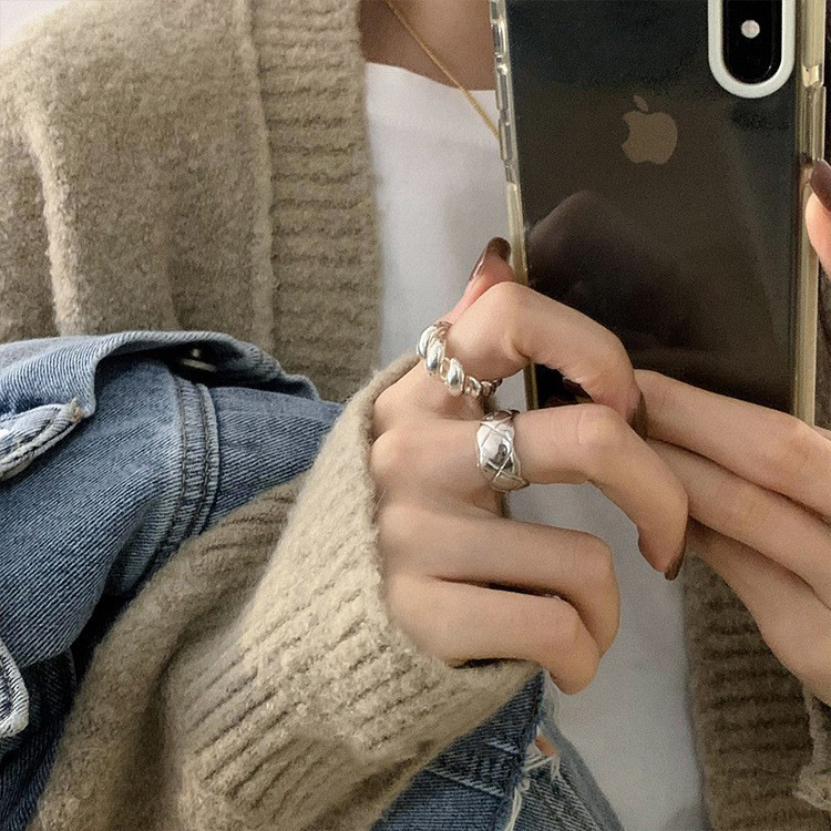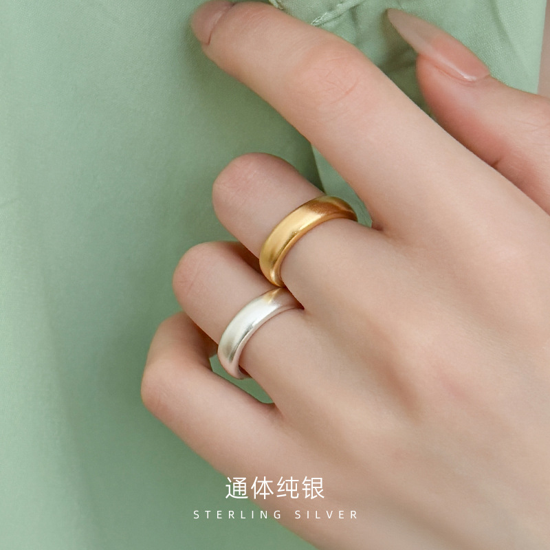 Cui Yan Jewelry S925 Silver Korean Heavy Industry Matte Loach Back Ring Xiaohongshu Ins Fashion Closed Mouth Index Finger Ring