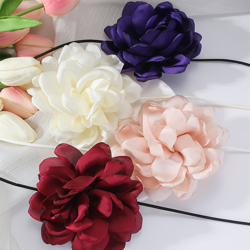 Creative Korean Large Velvet Flower Choker Choker for Women Simple Winding Handmade Necklace European and American Cross-Border Jewelry