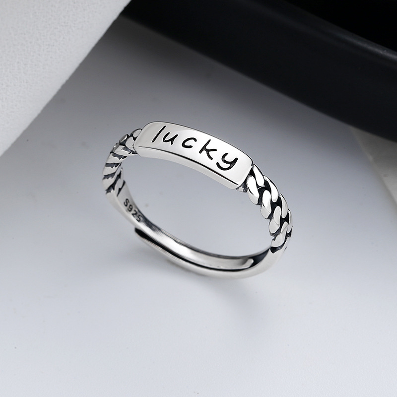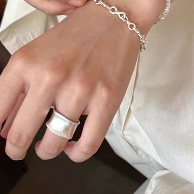 Chao Sheng S925 Sterling Silver Korean lucky Ring Simple Textured ins Personalized Fashion Hong Kong Style Food Ring for Women
