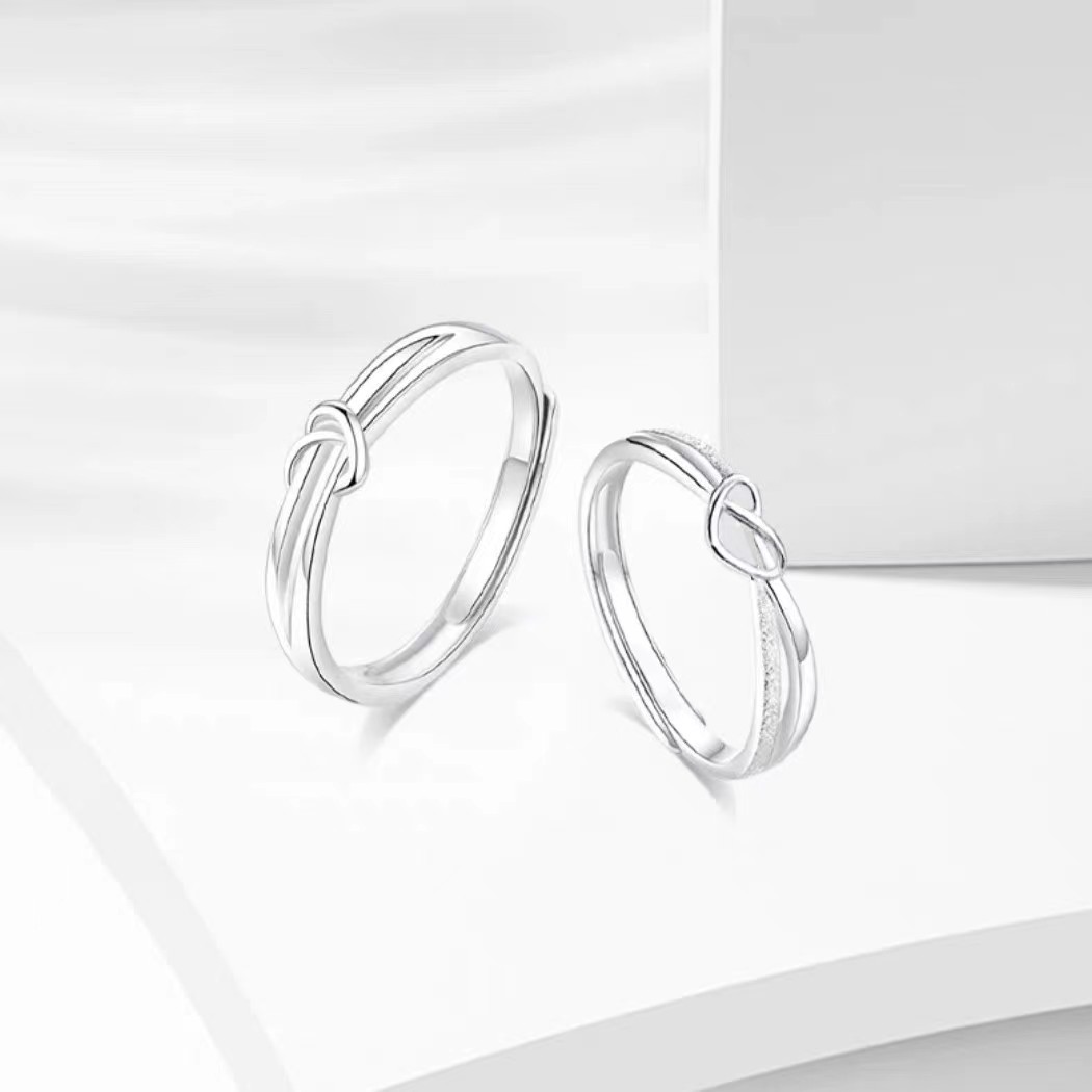 S999 Sterling Silver Japanese and Korean Style Distinctive Ring High-grade Ins Interwoven Heart-shaped Couple Adjustable Ring