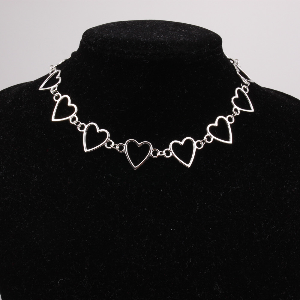 Stainless Steel Niche Hollow Love Necklace Bracelet Female Ins Japanese and Korean Style Simple Design Pendant Clavicle Chain suit
