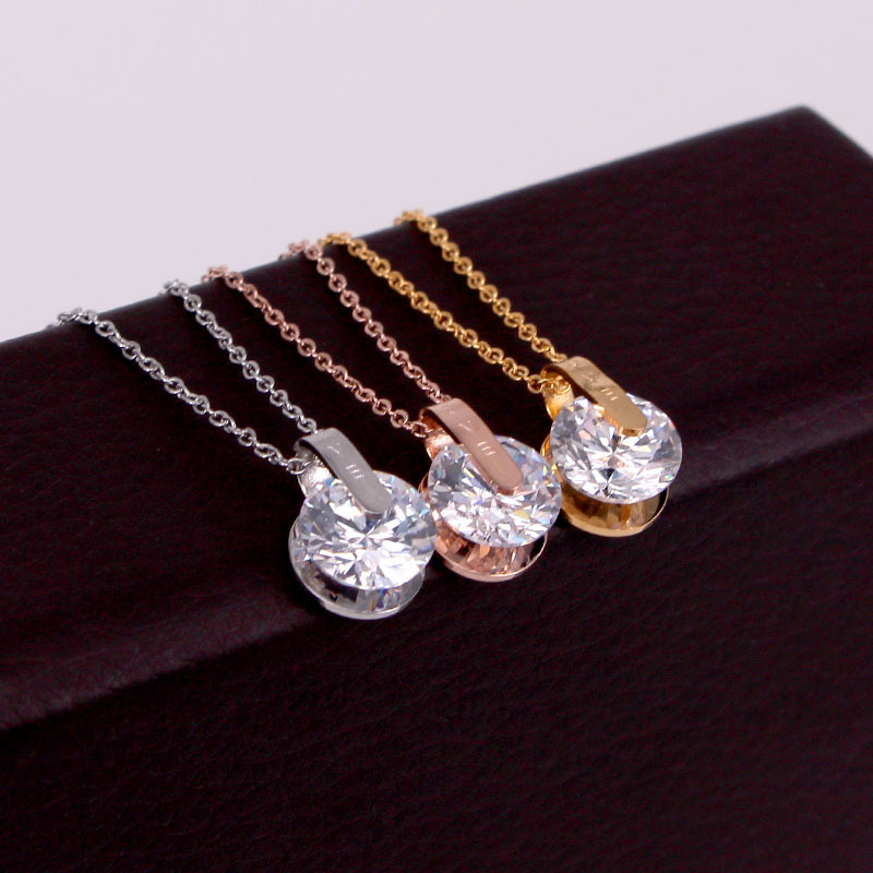 X2-411-1, Japanese and Korean Temperament Rotation 1 karat Ultra Flash Zircon Single Diamond Necklace Tide love Clamp Diamond Clavicle Chain