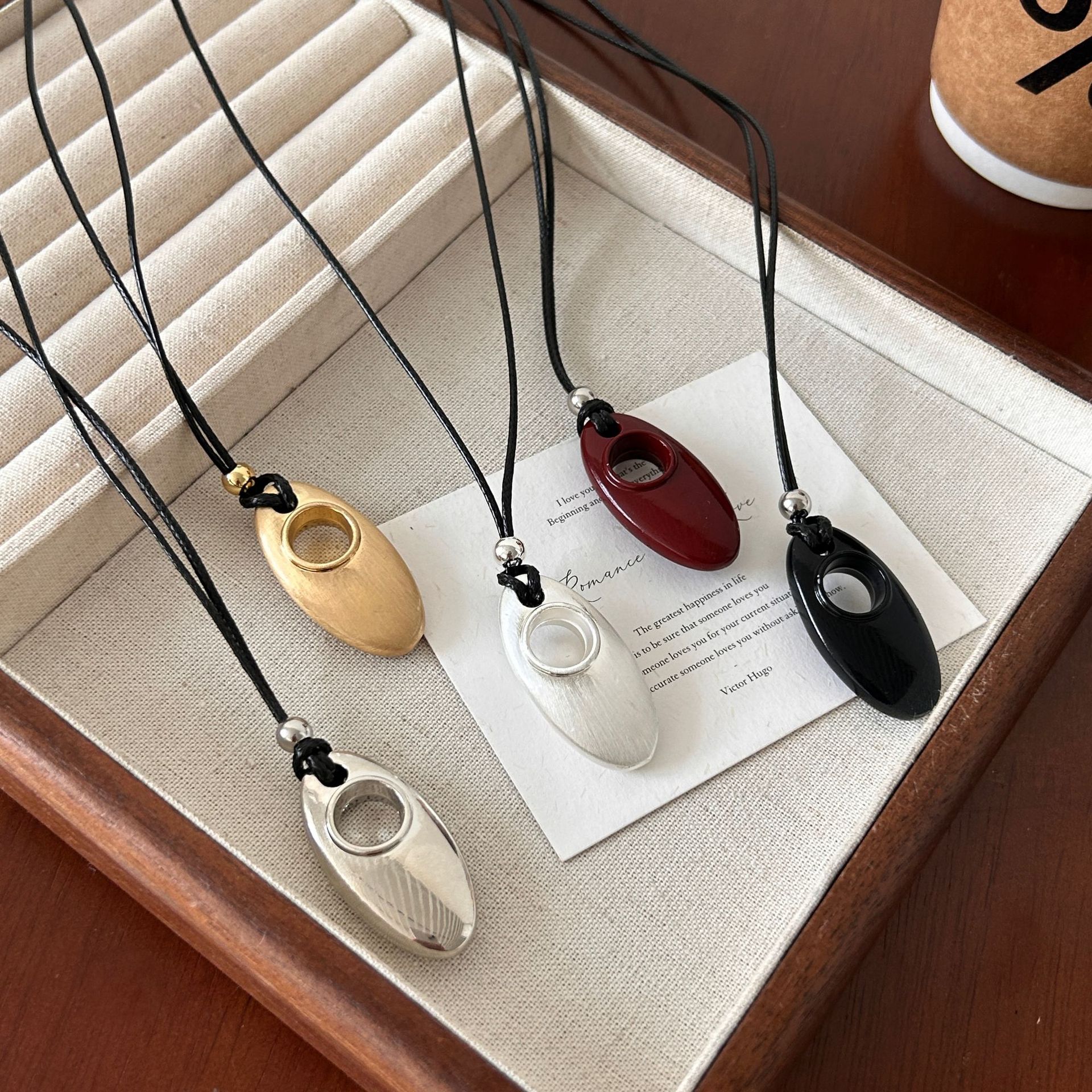 Korean Ouni Style Long Necklace for Women, Light Luxury with a High-End Feel, Water Drop Solid Small Horse Eye Pendant Sweater Chain Accessory