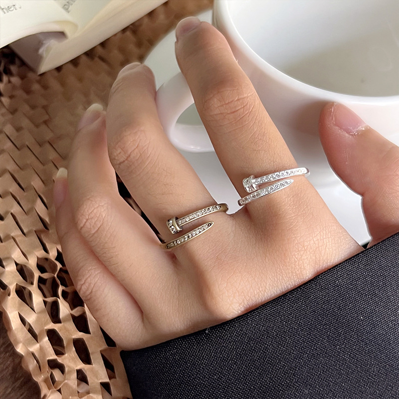 Lan zhi high-grade nail personality light luxury micro-inlaid jewelry women's bronze South Korea ins opening 925 silver ring wholesale
