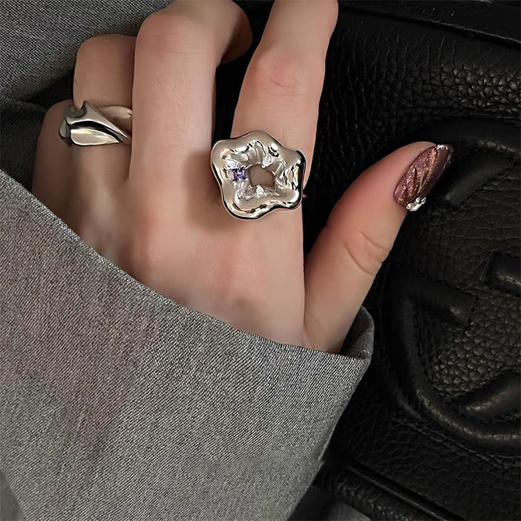 Irregular Metal Morning Petunia Index Finger Ring Women's Korean-style Distinctive All-match Elegant Fashionable Open Adjustable Ring