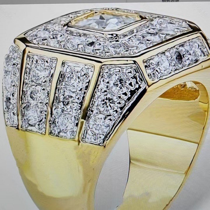 Yansheng European and American men's gold-plated zircon ring cross-border trend jewelry hip-hop ring Amazon hot sale