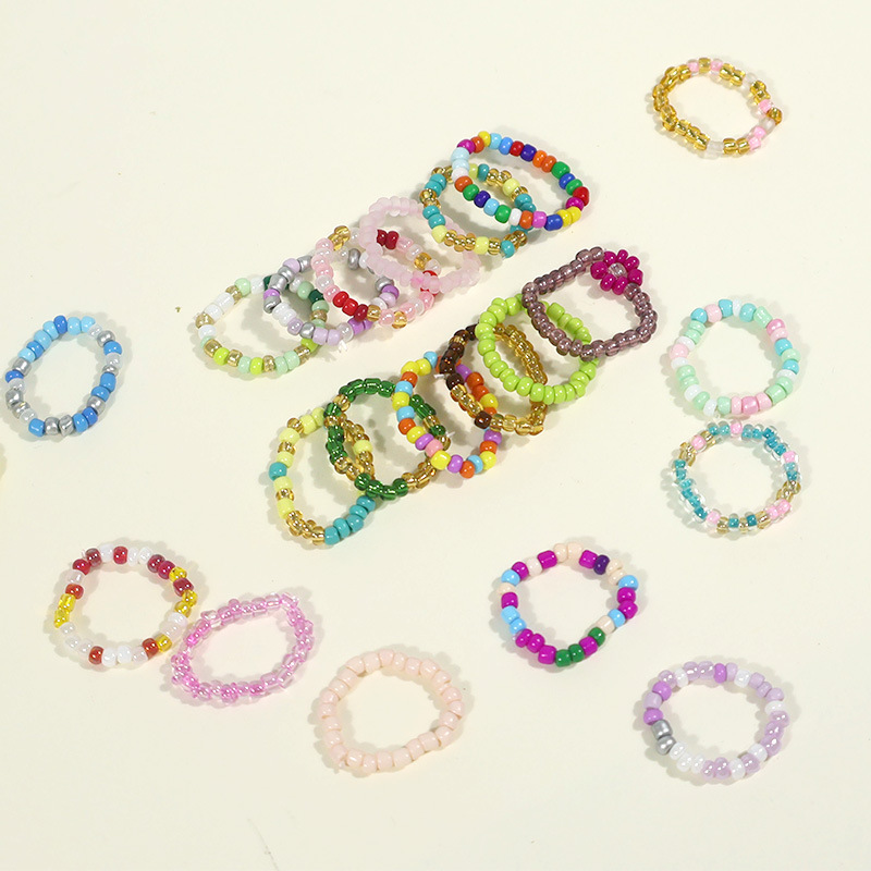 In-Stock Hyuna Style Rice Bead Ring Korean and Japanese Fashion Dopamine Flower Beaded Ring Bohemian Style Ring