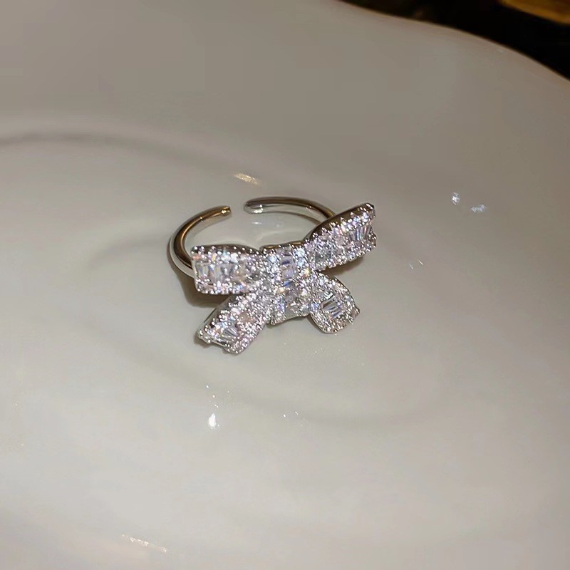 Korean Dongdaemun Light Luxury High-end Diamond Bow Ring Women's Exquisite All-match Fashion Niche Design Sense