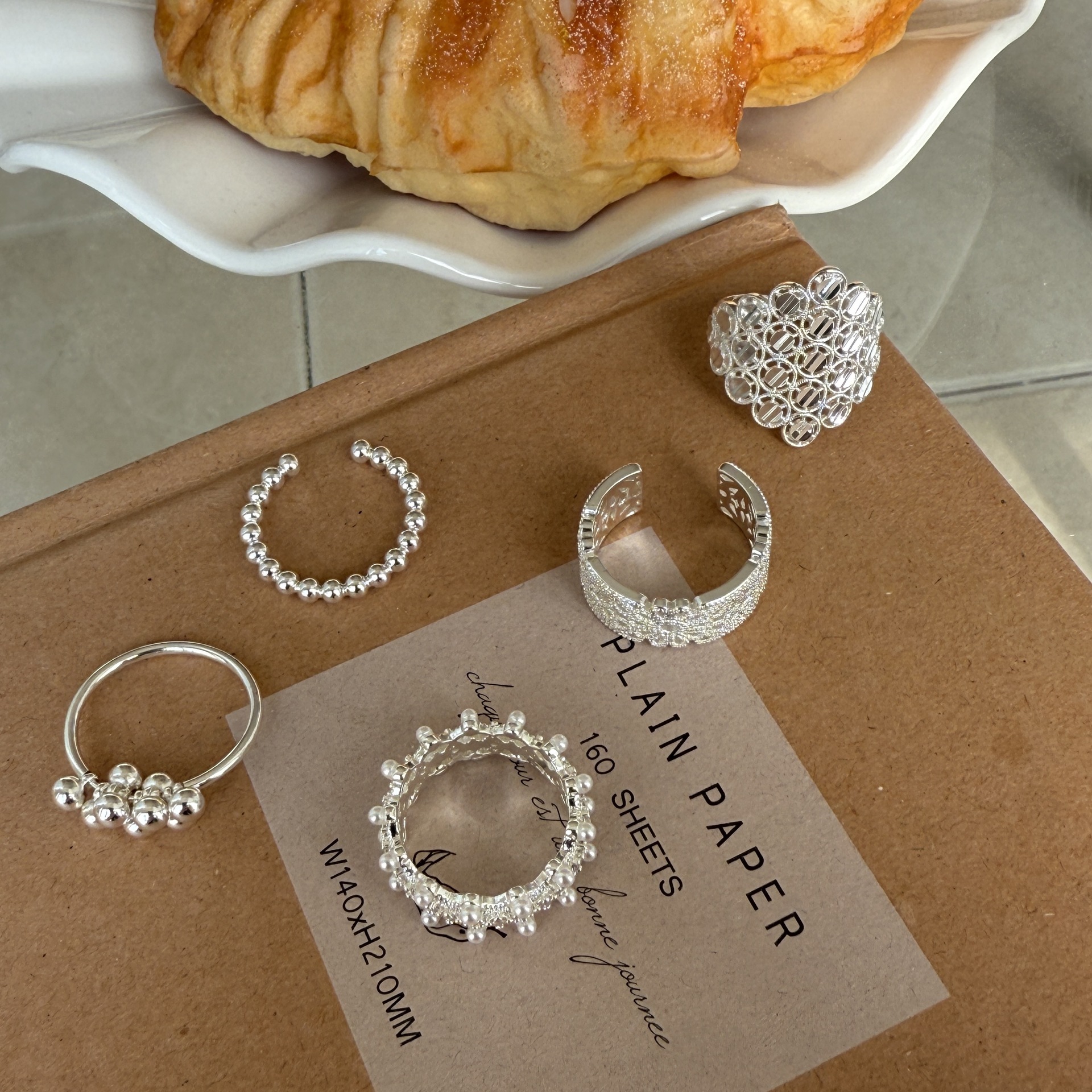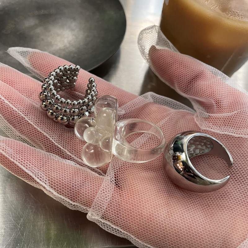South Korea Blogger Same Ring Design Sense Ring Wide Bead Multi-Layer Stacked silver Opening Finger Ring