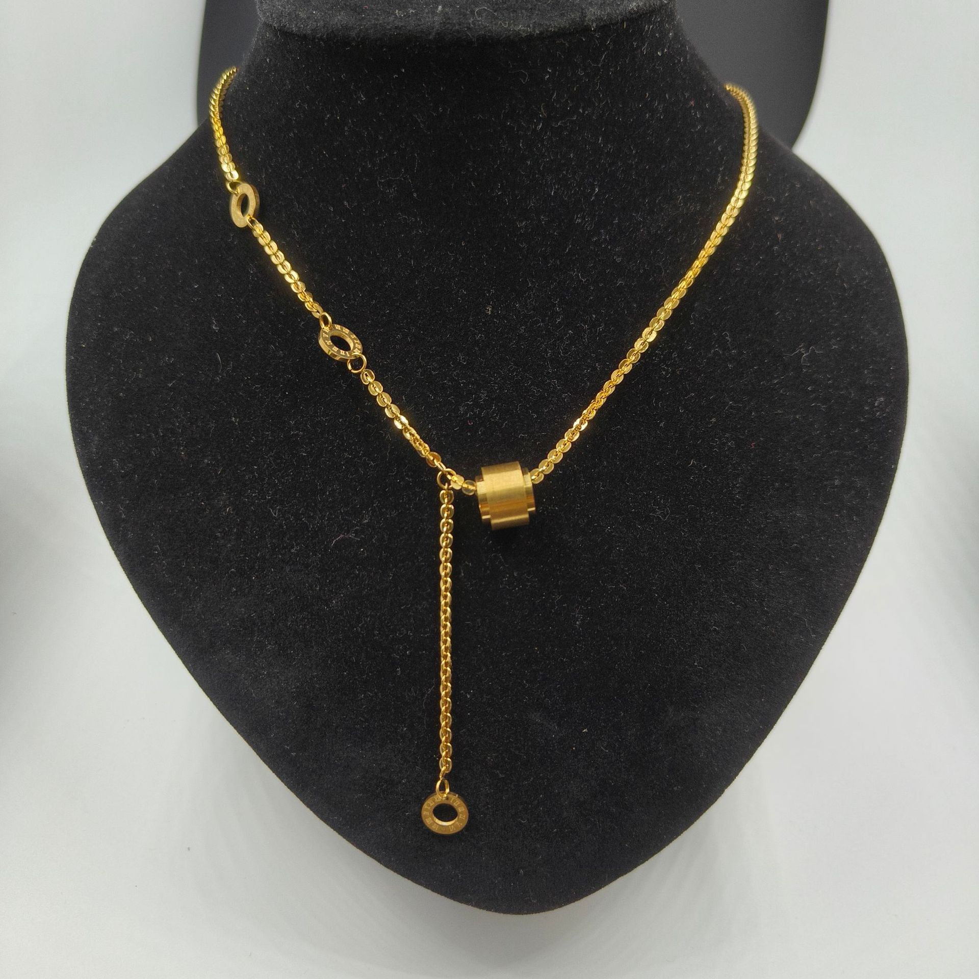 Light Luxury Roman Cylinder Small Man Waist Necklace Women's 18K Titanium Steel Fade-free Simple All-match South Korea Elegant Clavicle Chain