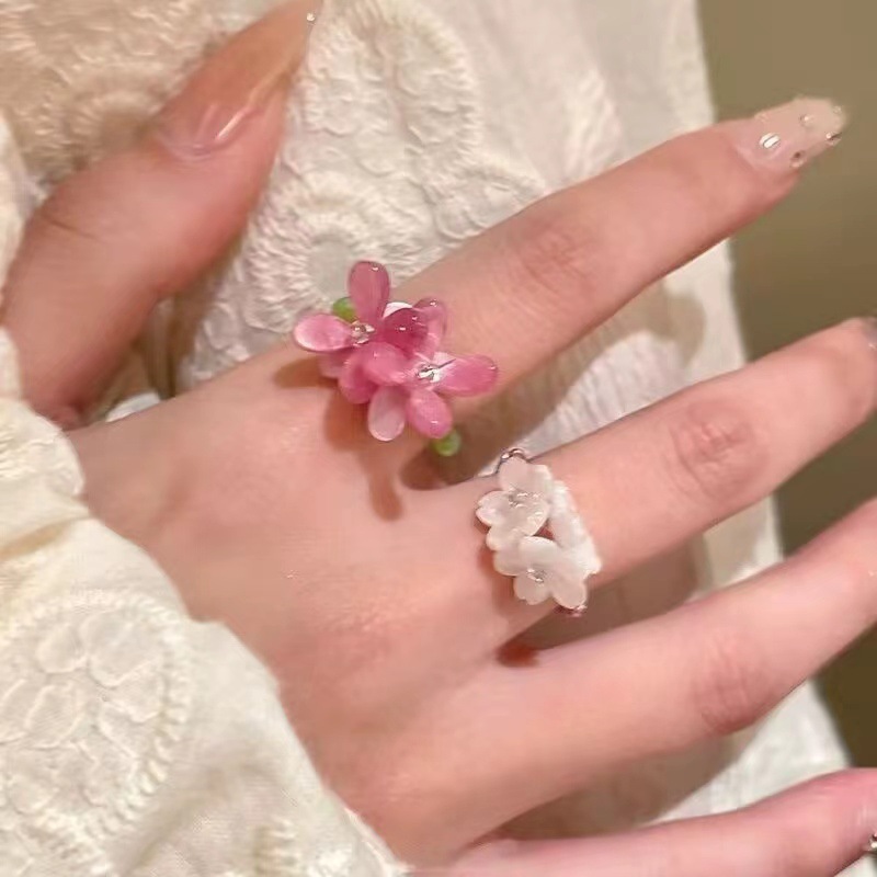 Early Spring Tone ~ Dopamine Colorful Hydrangea Flower Ring for Women, Seaside Vacation Style Index Finger Ring, Girly Heart Ring
