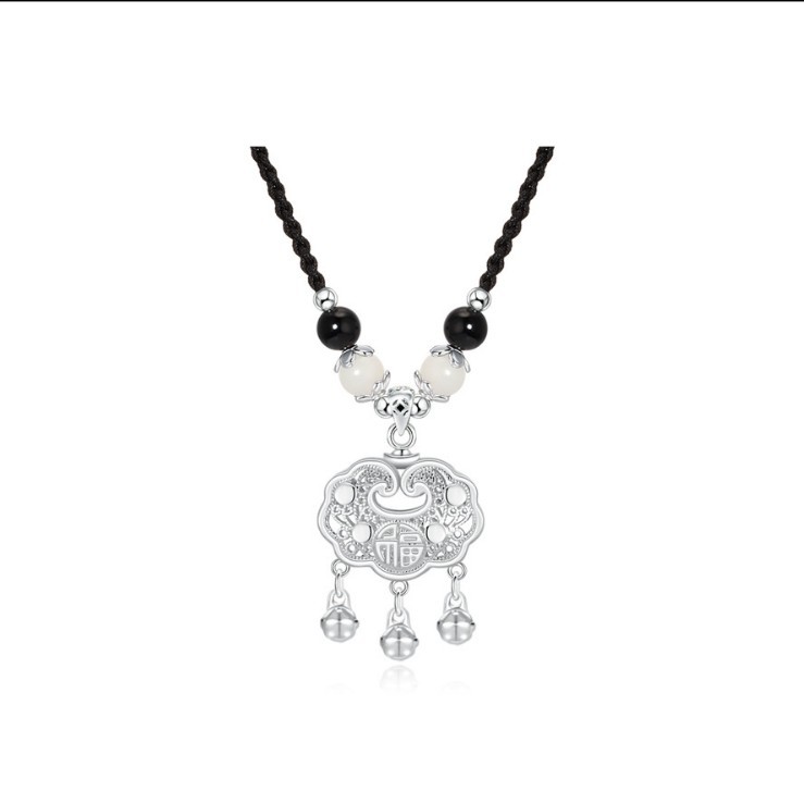 Chenxi Ping An Fu Lock Long Life Lock Woven Necklace Strawberry Crystal Bodhi New Chinese Style Clavicle Chain Ethnic Style Ins
