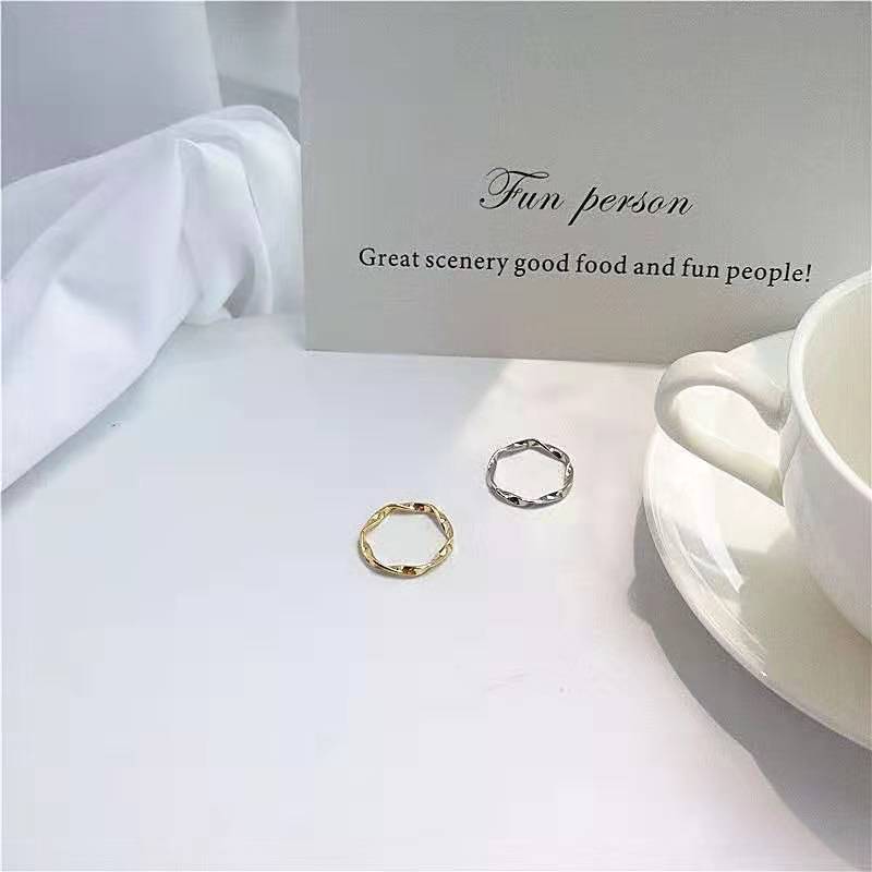 New simple blue wave wave pattern ring female niche design fashion Joker aperture ring Accessories Wholesale