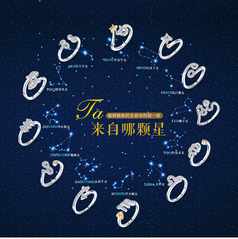 Korean fashion silver bracelet constellation opening ring twelve constellation ring platinum silver jewelry wholesale