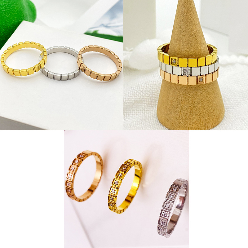 Korean style small square narrow version glossy ring cross-border single diamond ins Golden Finger Ring women's titanium steel half diamond encrusted diamond hand ornament