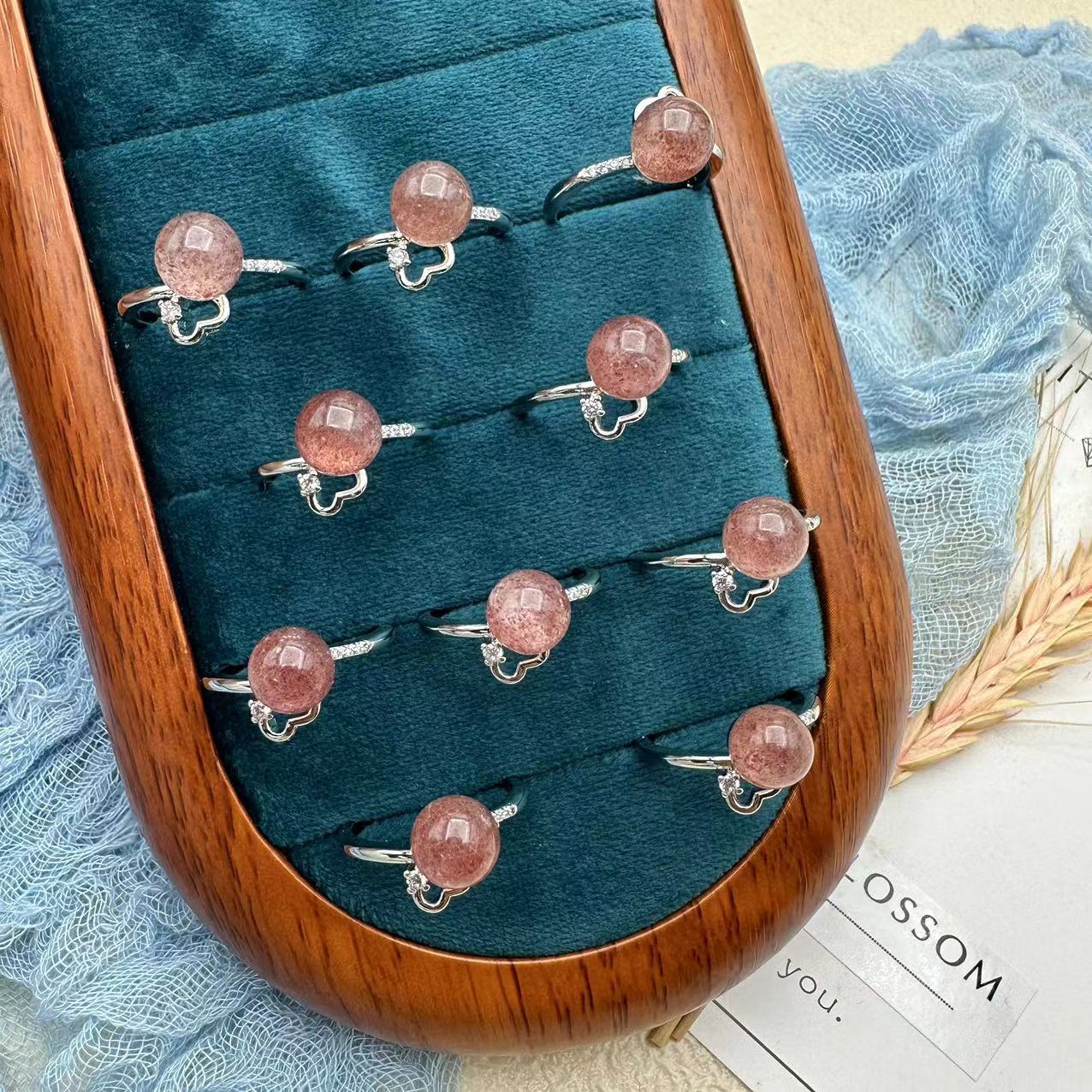 Natural Red Strawberry Crystal Ring with Many Strawberry Points, No Black Spots, Adjustable Size, Unique Color, Wholesale from Manufacturer, Korean Style
