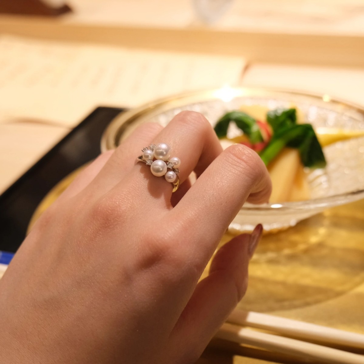 Seven-Piece Diamond-Encrusted Artificial Pearl Ring for Women, Niche Design, Fashionable Stylish, Simple Elegant, Korean Style, Versatile and High-End