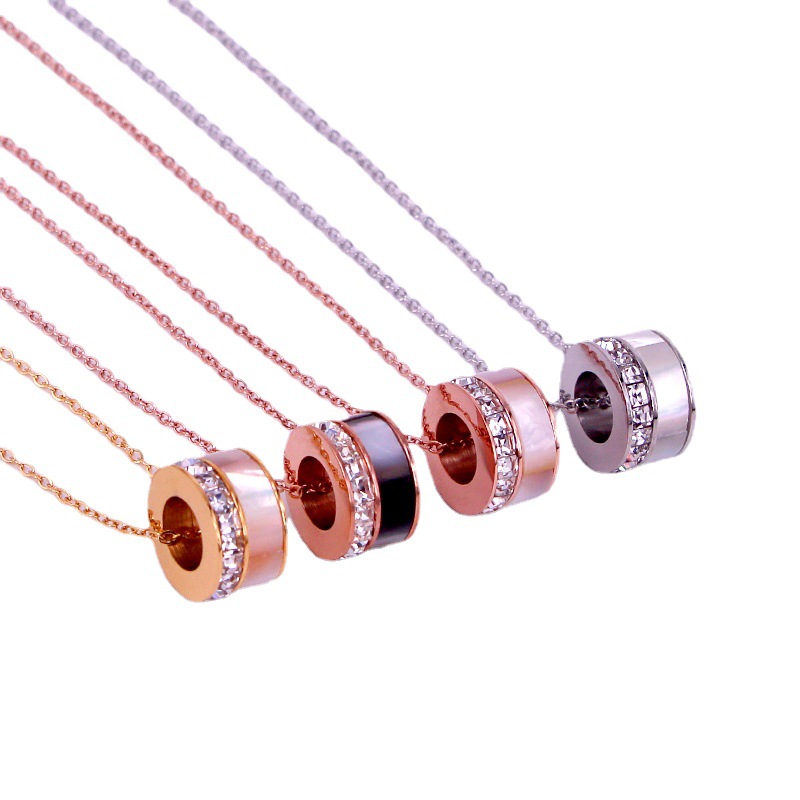 X7-401 Japanese and Korean-South Korean Weekly Circle Black and White Shell Square Diamond Rose Gold Necklace Super Flash Czech Diamond Mother of Pearl Clavicle Chain