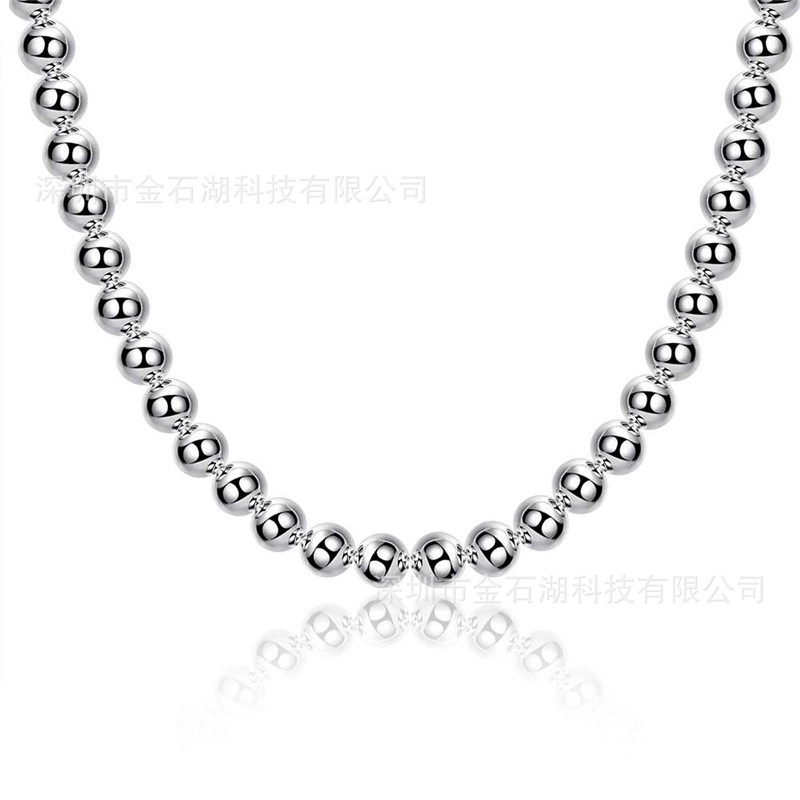 Silver-plated women's foreign trade European and American hollow 10MM Buddha beads necklace simple spherical silver jewelry jewelry 925 brand