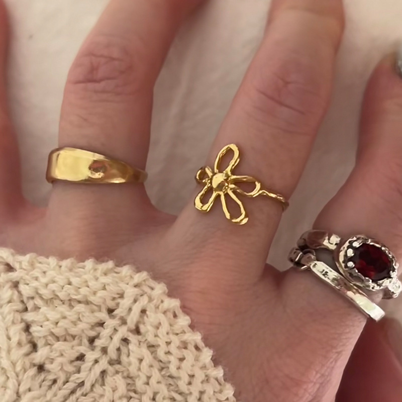 Heavy Metal Flower Open Ring Women's South Korea Niche Design Retro Finger Ring Personalized All-match Elegant Ring