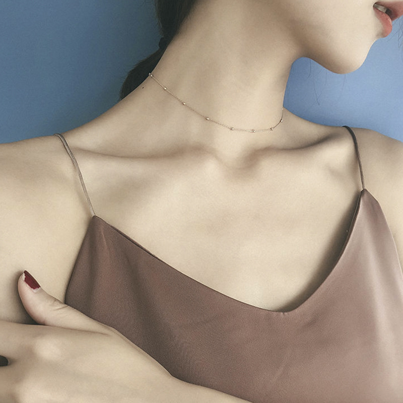 Cross-border choker Smiley Girl Heart Necklace Korean Slim Spaced Large Ball Beads Clavicle Chain Simple Short Neck