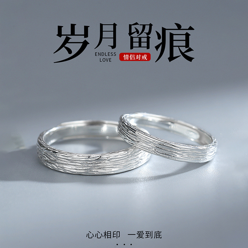 Time Leaves Its Mark on Pure Silver Couple Rings, a Pair of Men's and Women's Niche Plain Rings, Commemorative Birthday Gifts
