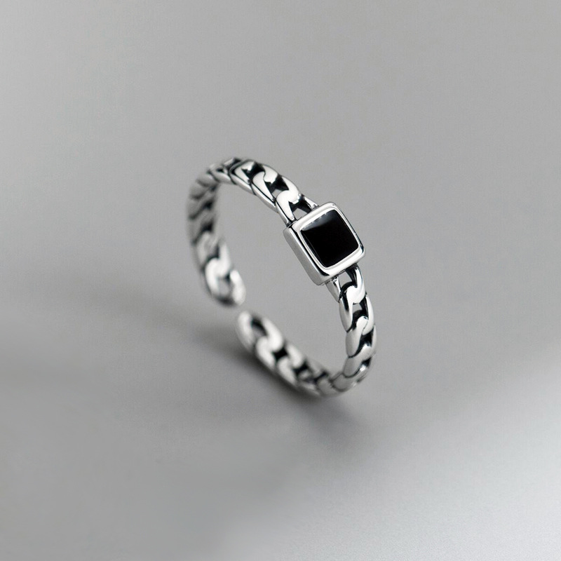 Korean version of the chain retro ring ins personality temperament women's fashion woven square glue finger ring wholesale