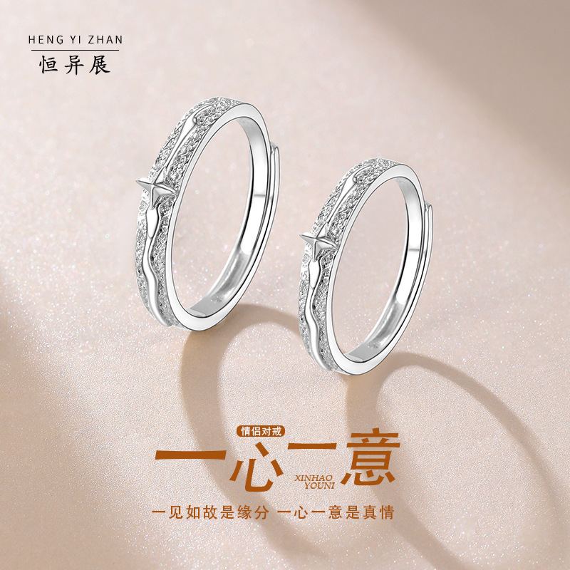 999 Sterling Silver Ring Korean Style Retro Texture Style Niche Meteor Shower Wishing Star Couple's Ring Holiday Girlfriend